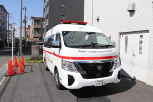 ・京都田辺中央病院の電動ストレッチャー付き救急車の展示